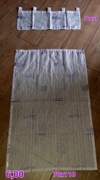 Coppia di tende lilla con motivi viola e grigi/argento cucite a mano. Le tende misurano L70xH110 Le mantovane misurano L70xH31