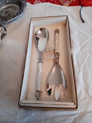 Posate Insalata Vintage Argento e Bianco