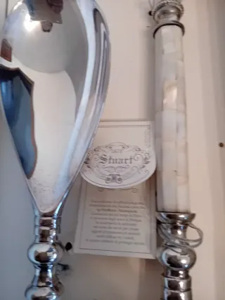 Bellissimo set per servire torte, composto da una elegante pala e un coltello. Entrambi i pezzi sono realizzati in metallo argentato( placatti in atgento 1000 con timbro )e presentano decorazioni raffinate. Perfetti per occasioni speciali o per aggiungere un tocco di classe alla tua tavola! - Design elegante e raffinato - Ideali per servire torte e dolci - Realizzati in metallo di alta qualità