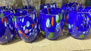 set da 6 bicchieri di murano di colore blu rosso e azzurro