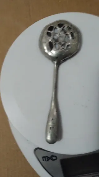 Elegante cucchiaio in metallo, parte della linea 800. - Design raffinato con fori decorativi sulla parte superiore. - Manico affusolato con incisioni.