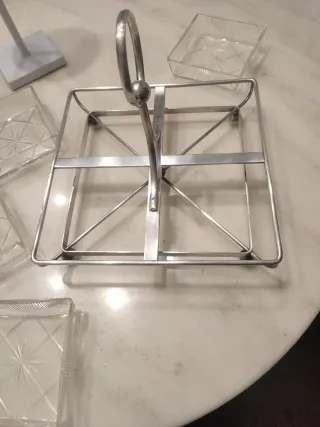 Antipastiera con 4 contenitori vetro,uno presenta piccola imperfezione come da foto