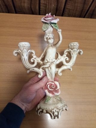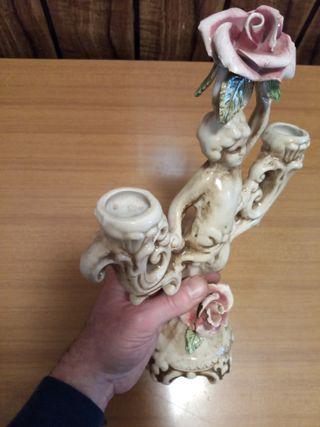 Candelabro vintage putto 3 braccia rosa