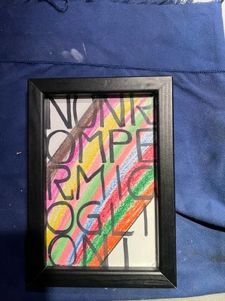 Quadro decorativo con uno slogan scritto a mano e sfondo colorato. - Cornice nera. - Disegno a mano libera con pastelli.