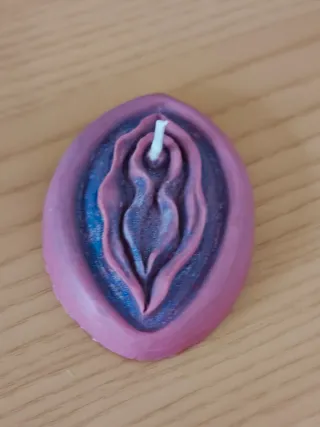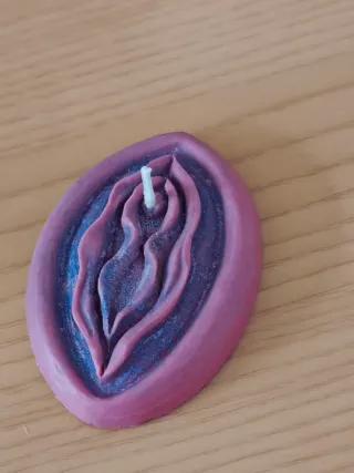 Candela decorativa in cera di soia. - Colore rosa e viola. - Design unico.