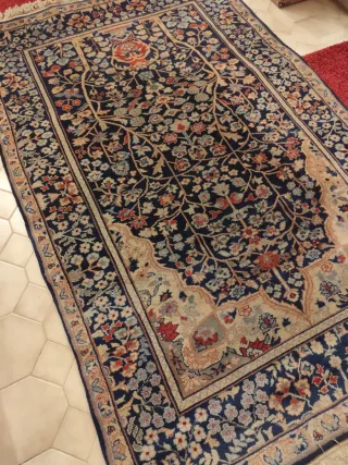Bellissimo Tappeto Persiano Qum Seta e Lana.