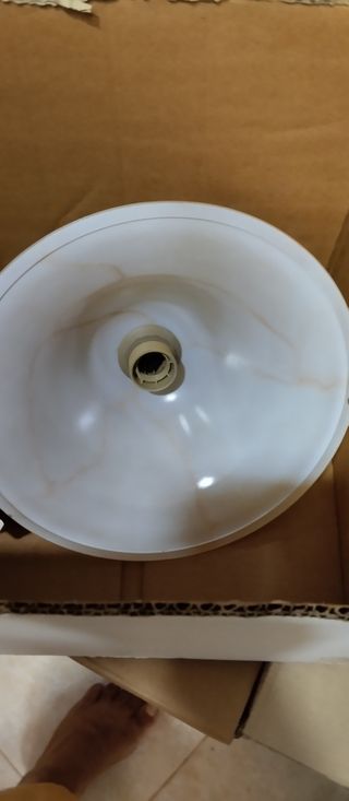 Bellissima lampada da soffitto, in buone condizioni. C'è un piccolo difetto ma da sotto non si vede all'angolo manca un po' di colore - Diffusore in vetro e plastica. - Colore beige e bianco, con venature delicate. - Perfetta per illuminare con stile la tua casa.