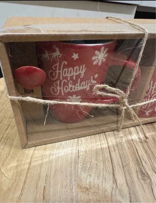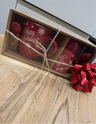 Set 2 tazzoni Happy Holidays con cucchiaini