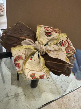 Elegante runner decorativo con un tocco festivo, perfetto per aggiungere un dettaglio speciale alla tua casa. - Design con fiocco e motivi natalizi. - Bordi dorati scintillanti.