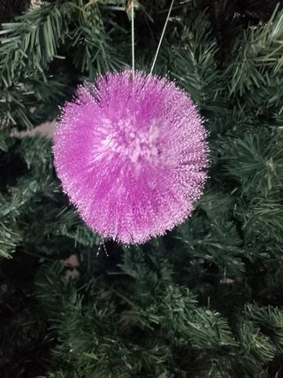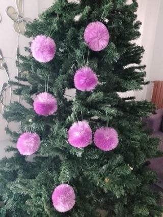 Set di decorazioni natalizie a forma di pon pon rosa. - Ideali per addobbare l'albero di Natale. - Realizzate in tessuto e plastica.