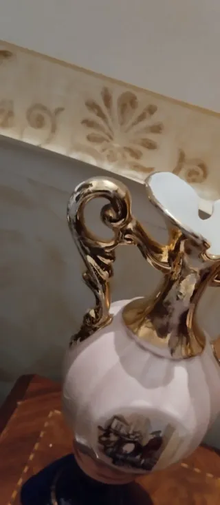 Elegante portafiori vintage con Un pezzo unico per aggiungere un tocco di classe alla tua casa. - Manici dorati. - Raffigurazioni di personaggi in stile classico.
