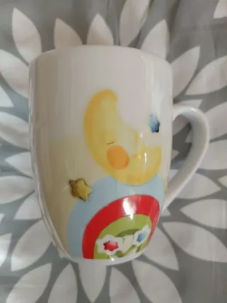 Tazza in ceramica Thun con una simpatica grafica. - Design caffè al volo - Decorazione con luna, stelle e arcobaleno - Manico comodo - Nuova con scatola - Plenitube
