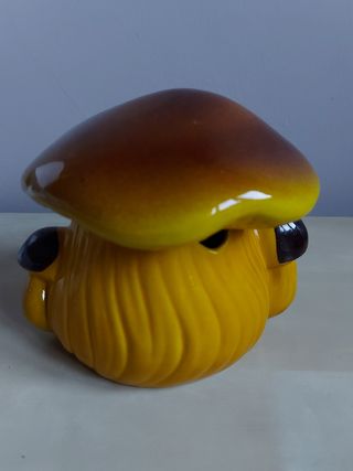 vendo contenitore di ceramica a forma di fungo, con foro per cucchiaio. Larghezza totale circa 14 cm, l'apertura è circa 7.