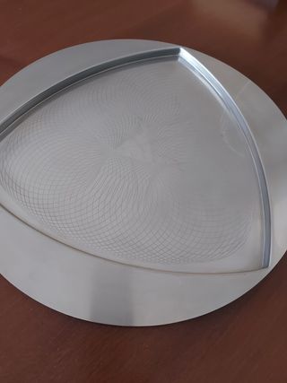 Vendo vassoio in metallo con motivo geometrico, anni 70' , diametro 38 cm
