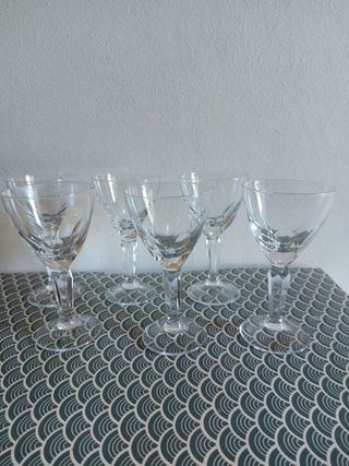 Vendo 6 calici piccoli da liquore in vetro. Altezza 11 cm, larghezza 6 cm