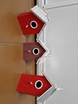 Bellissime casette per uccelli, realizzate a mano con legno. Sono ideali per attirare gli uccelli nel tuo giardino o balcone. - Design rustico e affascinante. - Perfetto da appendere su alberi o pali. - Fammi qualsiasi domanda via chat.