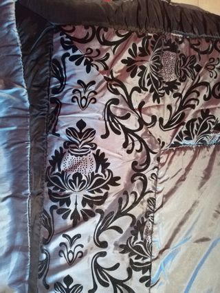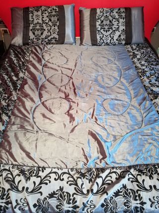 Trapuntino copriletto matrimoniale grigio raso e velluto/cotone con 2 federe e lenzuolo sotto con angoli in cotone