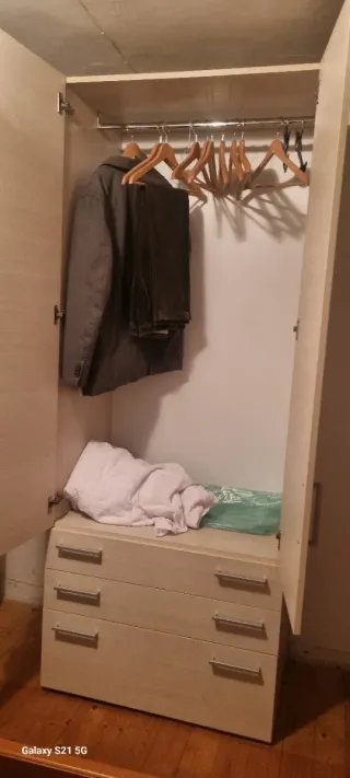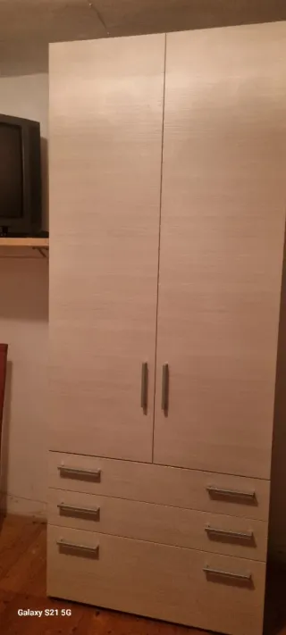 Armadio con finitura color acero chiaro, dotato di due ante battenti e tre cassetti. - Finitura color acero chiaro. - Due ante. - Tre cassetti. Ritiro.a mano nelle vicinanze di Feltre