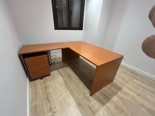 Scrivania da ufficio con design curvo e pratica cassettiera. Superficie in legno. Struttura metallica. Cassettiera integrata. Varie dimensioni di tavoli: 2 da 120, 1 da 160, 1 da 180 e tavolo riunioni 120x120. Il prezzo è per il set tavolo + cassettiera. Richiedere misure o altre foto. Le scrivanie sono smontate e si trovano ad Aravaca, non effettuo spedizioni, solo consegna a mano. Il prezzo è negoziabile e si può regolare per l'acquisto di più pezzi. Disponibili 5 cassettiere.