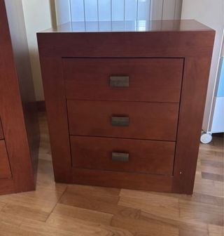 Cassettiera a tre cassetti in perfetto stato. Dimensioni 120x49x70,5. Tre comodini a un cassetto in perfetto stato. Due di essi hanno le stesse dimensioni 45x49x26,5, e l'altro 60,5x49x26,5. Prezzo cassettiera 200€. Prezzo tre comodini 150€. Set di quattro unità 300€. Nessuna spedizione a domicilio. Solo ritiro.
