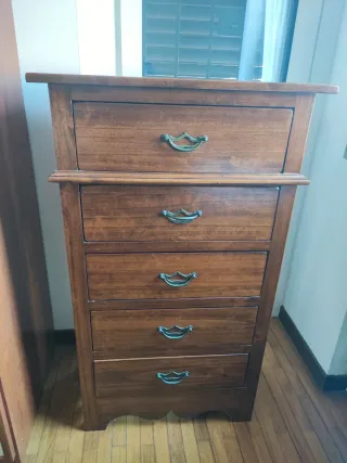 Elegante cassettiera a 5 cassetti, perfetta per organizzare i tuoi spazi. - Realizzata in legno massello. - Design classico e funzionale. - Maniglie decorative in metallo.