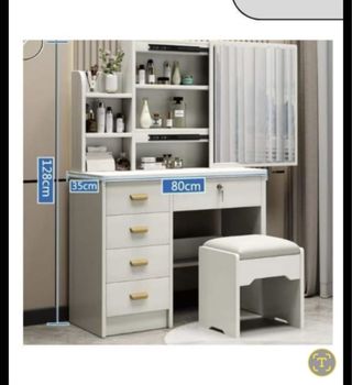 Elegante specchiera per il trucco con illuminazione integrata e sgabello coordinato. Un'aggiunta funzionale e di stile alla tua zona beauty. - Dimensioni specchiera: 128cm (altezza) x 80cm (larghezza) - Dimensioni cassettiera: 35cm (profondità) - Sgabello imbottito incluso