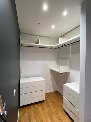 Vendo elementi per cabina armadio modulare. 1 cassettiera con rotelle (86x49x85) 1 cassettiera con rotelle (66x49x85) 2 ripiani con appendiabiti (65x46) 3 ripiani con appendiabiti (85x46) La soluzione modulare consente grande flessibilità di allestimento secondo le proprie esigenze. Per le misure esatte vedi foto con progetto tecnico.