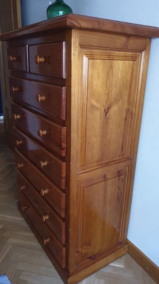 Cassettiera in legno di pino massiccio con una calda finitura marrone. In perfette condizioni. Viene consegnato a Príncipe Pio. Se sei interessato, scrivimi e ti dirò l'indirizzo completo (sarebbe vicino al centro commerciale).