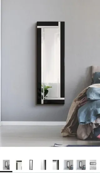 Elegante specchio da parete con una cornice che combina nero e argento. Perfetto per aggiungere un tocco di stile a qualsiasi stanza. - Cornice in metallo. - Vetro a specchio.