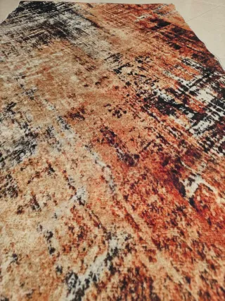 Tappeto con un design astratto e moderno, perfetto per aggiungere un tocco di stile alla tua casa. La base antiscivolo garantisce stabilità. - Motivo a pennellate astratte. - Tonalità calde e intense. - Bordi rifiniti con cura.