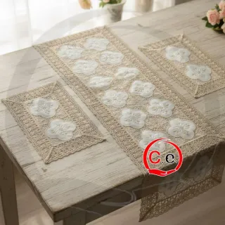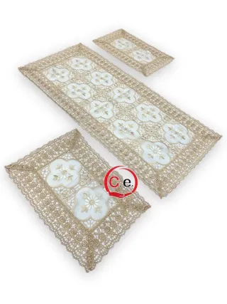 Tris centri in macramè & organze Variante unica: • Ecrù Fantasie disponibili: • Margherite