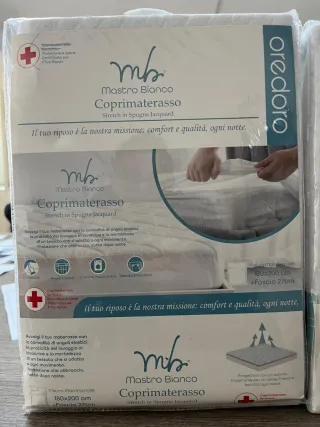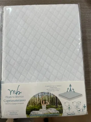 Coprimaterasso Mastro Bianco in tessuto jacquard elasticizzato. Progettato con un sistema traspirante per un riposo fresco Coprimaterasso spugna 7.50€ singolo 10€ matrimoniale