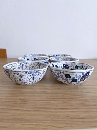 Larghezza 12 cm circa Altezza 4,7 cm circa Ciotole in ceramica realizzata e dipinta a mano in Turchia. Dipinta nel stile Samur, replica del design ottomano del XV secolo. Senza piombo e sicuro per gli alimenti. Lavare a mano. Sono presenti alcune imperfezioni dovute alla natura del materiale e alla tecnica di realizzazione dell'oggetto, come visibile dalle foto. - Design unico con bordo ondulato. - Motivo floreale tradizionale. - Materiale: ceramica di alta qualità. - Senza piombo.