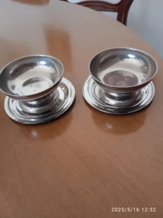 Elegante set di due coppette per gelato, perfette per servire i tuoi dessert preferiti con un tocco retrò. - Design vintage. - Realizzate in metallo lucido.