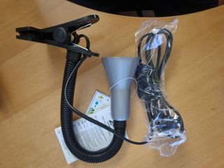 Set di due lampade da scrivania con braccio flessibile. - Clip di fissaggio robusta. - Braccio snodabile per orientare la luce. - Design moderno.