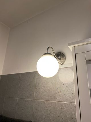 Lampada da parete per bagno con finitura in metallo e diffusore in vetro. - Design moderno e pulito. - Ideale per illuminare specchi o aree specifiche.
