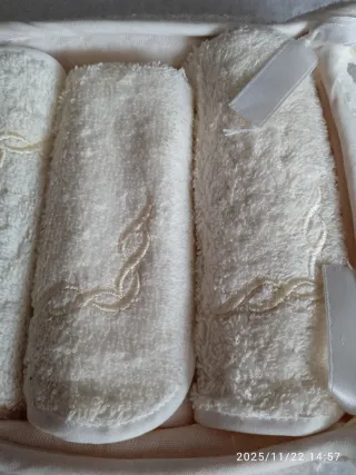 Confezione composta da 3 asciugamani ospiti contenuti in cestino