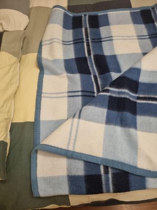 Morbida coperta in pile con un classico motivo a quadri. - Motivo a quadri nei toni del blu e bianco. - Bordatura azzurra. - Tessuto in pile. - coperta in pile con motivo a quadri blu, azzurri e bianchi - usato un paio di volte non di più - misure 140c m x 210 cm