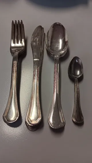 Elegante servizio di posate placcato argento, ideale per sei persone. Un tocco di classe per la tua tavola. - Set completo per sei commensali. - Design raffinato e intramontabile.
