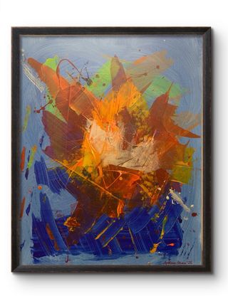 Opera d'arte astratta Buba firmata A. Cacace. Le dimensioni sono 40x50 cm. - Tecnica mista acrilica su tela. - Colori vivaci e texture materica. Pronto da appendere