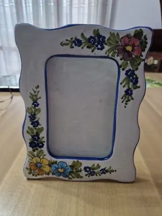 Deliziosa cornice portafoto in ceramica, perfetta per custodire i tuoi ricordi più belli. La cornice è decorata a mano con un motivo floreale vivace e colorato.aquistaya a Virtri sul mare - Design ondulato sui bordi. - Decorazioni floreali dipinte a mano. - Bordatura interna ed esterna blu.