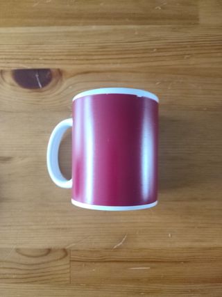 Tazza bianca e rossa/rosa che cambia colore con il calore Con il calore appare la scritta "for you" vedi in foto. Leggermente rovinata la grafica come si vede Classica tazza da tè