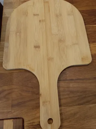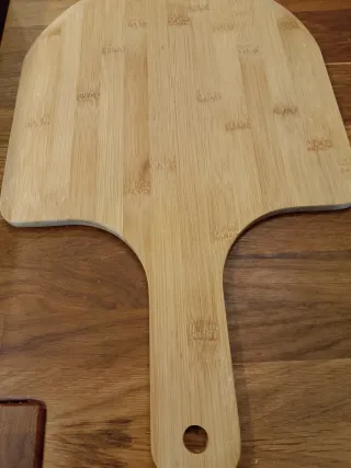 Pala per pizza realizzata in bambù, con un design semplice e funzionale. - Materiale naturale e resistente. - Manico ergonomico per una presa comoda. - Foro sul manico per appenderla facilmente.