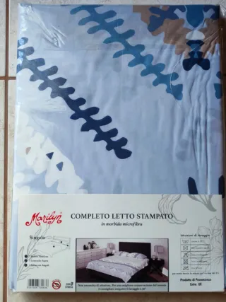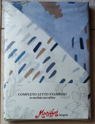 Completo lenzuola singolo con una stampa moderna e colorata. - Tessuto in morbida microfibra. - Design con pennellate astratte su sfondo azzurro - Adatto per letto singolo - No stiro - Composto da Federa, Lenzuolo sopra, Lenzuolo sotto con angoli - Articolo nuovo, mai usato, nella confezione originale - Non si accetta il reso su prodotto nuovo