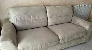 Comodo divano a due posti, perfetto per il soggiorno. - Rivestimento in tessuto resistente. - Colore neutro che si adatta a ogni arredamento.