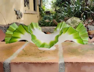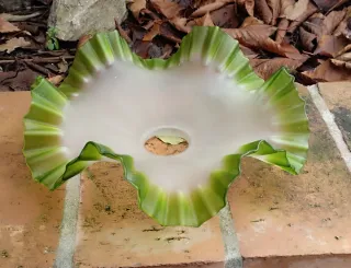 Elegante portalampada in vetro soffiato con un bellissimo effetto sfumato. Il design a onda aggiunge un tocco di originalità. - Finitura smerigliata con bordi verdi.