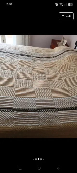 Copriletto matrimoniale con un design a scacchiera che ricorda la lana. - Motivo a scacchiera. - Bordi con striscia scura.
