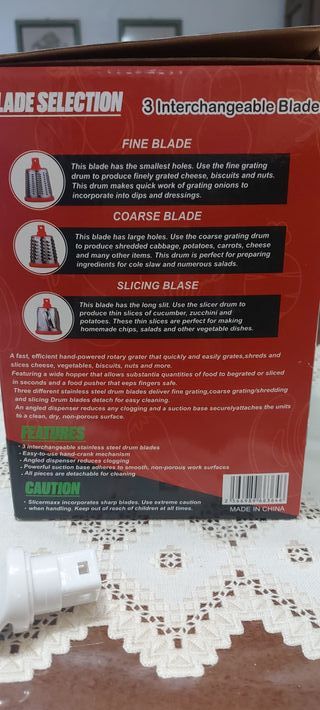 Utensile da cucina manuale per affettare, sminuzzare e grattugiare. - Design a manovella per un facile utilizzo. - Ideale per preparare carne macinata e verdure. - Componenti in plastica resistenti. Affetta verdure e tritacarne a manovella...nuovo con scatola e tutti gli accessori in perfette condizioni