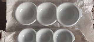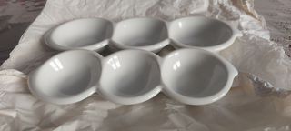 Set di due vassoi in porcellana, perfetti per servire antipasti. 2 vassoi per antipasti o sott'oli in ceramica bianca...umo più grande misura 27x10 cm...uno più piccolo misura 22x 7.5 cm Nuovi mai usati - Design a tre scomparti. - Colore bianco brillante.