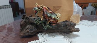 Bellissimo soprammobile a forma di drago posato su un tronco. Per gli appassionati bel soprammobile con drago su un tronco...nuovo con cartellino Misura 24x13...profondità 13 cm Marca teos artigianato etnico il materiale non è specificato - Dettagli colorati e finemente lavorati.
